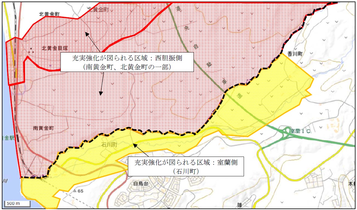 これに伴い、黄金地区(南黄金と北黄金の一部)では建物火災時に室蘭消防署蘭北支署からも消防車の出動が1台追加され伊達消防署(出動体制の現在と変更はありません)とともに火災の対応にあたることになるため地域の充実・強化となります。